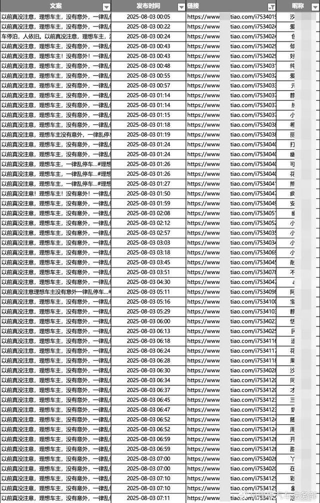 以8月3日为例,某平台从凌晨0时至早7时内出现45条标题雷同的视频,标题均为《理想车主一律乱停车》相关文案。
